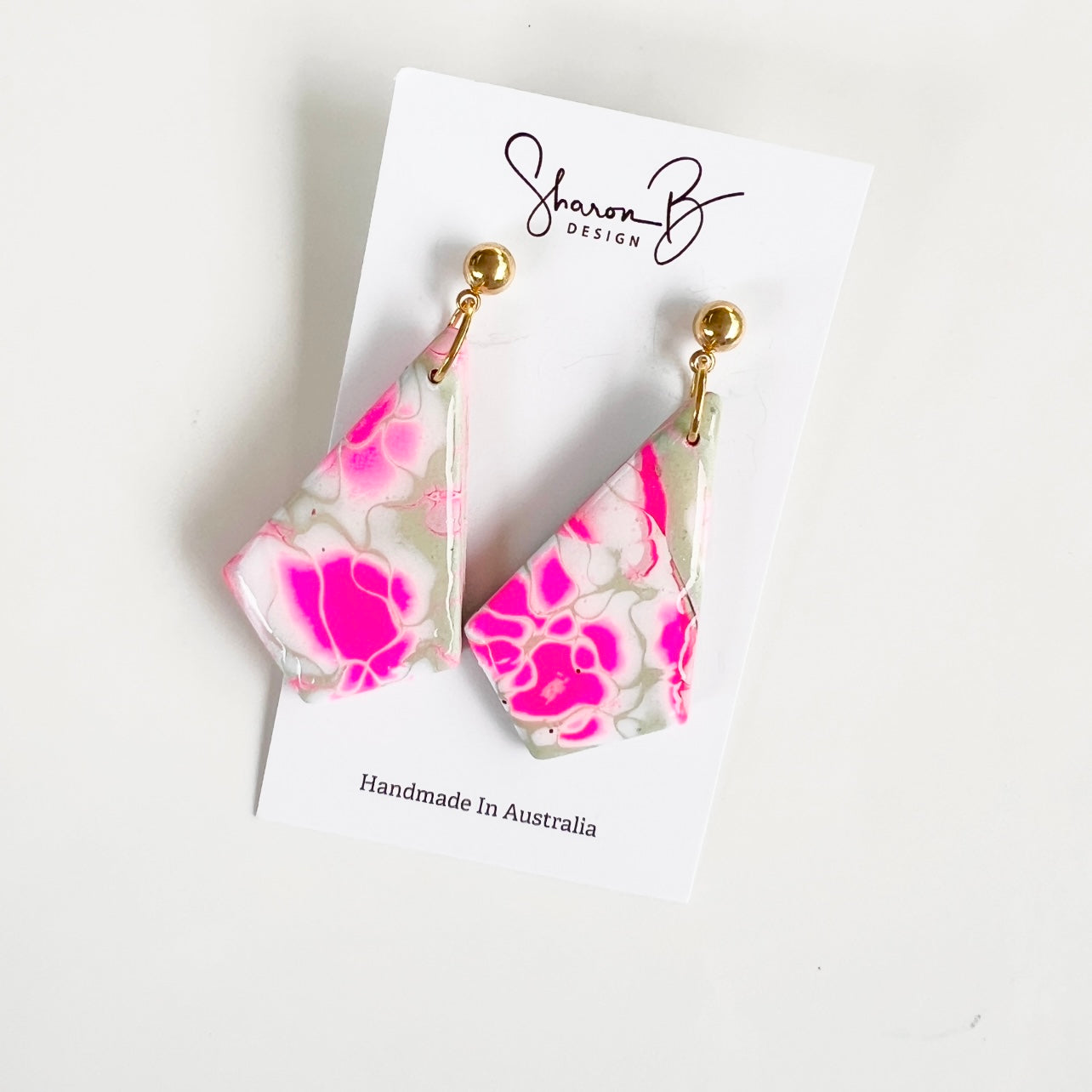 Polymer Clay Statement Dangles finished in Resin to make those colours pop.