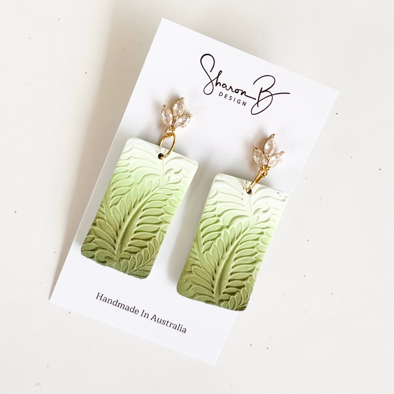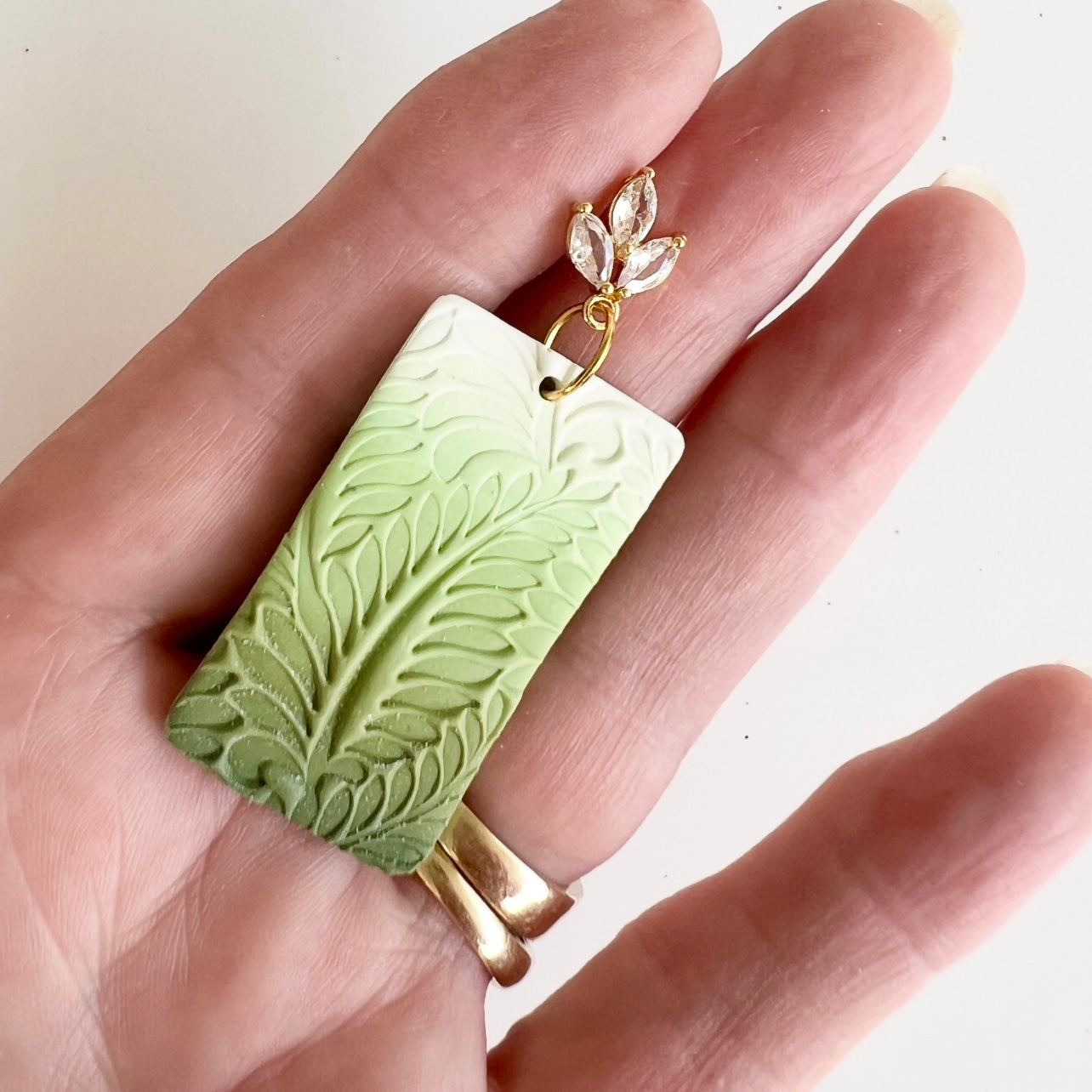 Stylish Polymer Clay Textured Sage Green Ombré Dangle.