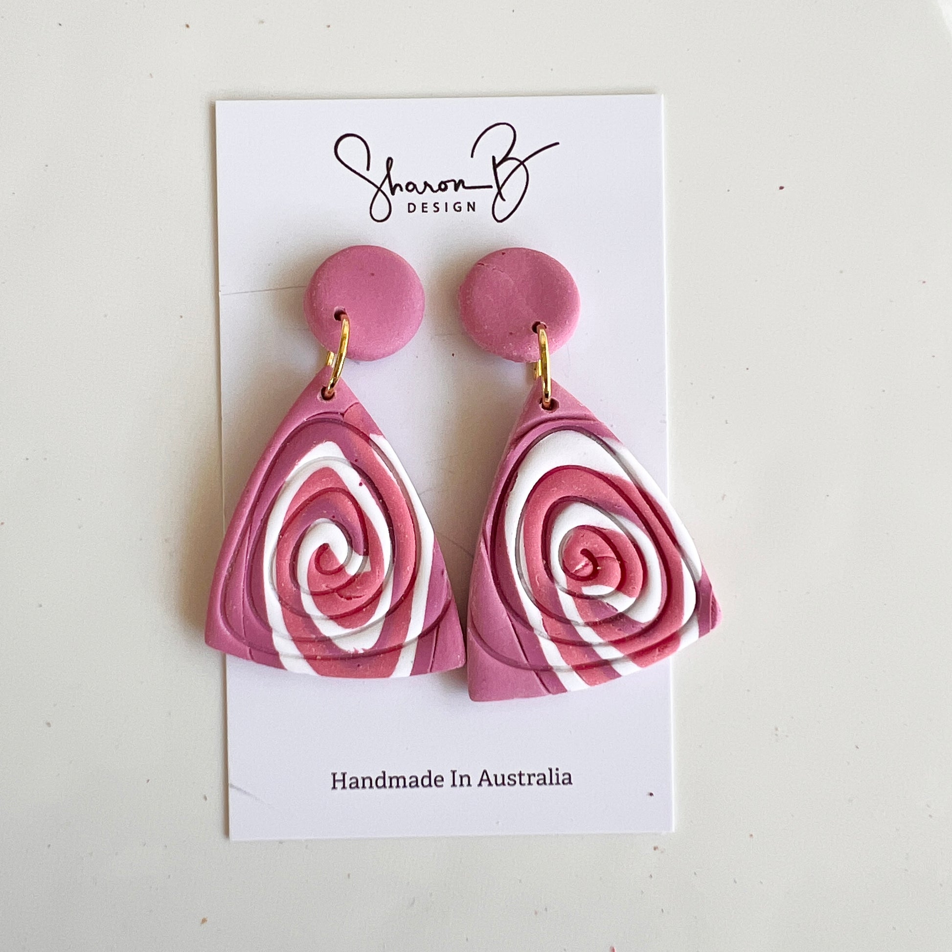 Caroline ~ Polymer Clay Dangle Earrings. Pink and White Funky Dangles.