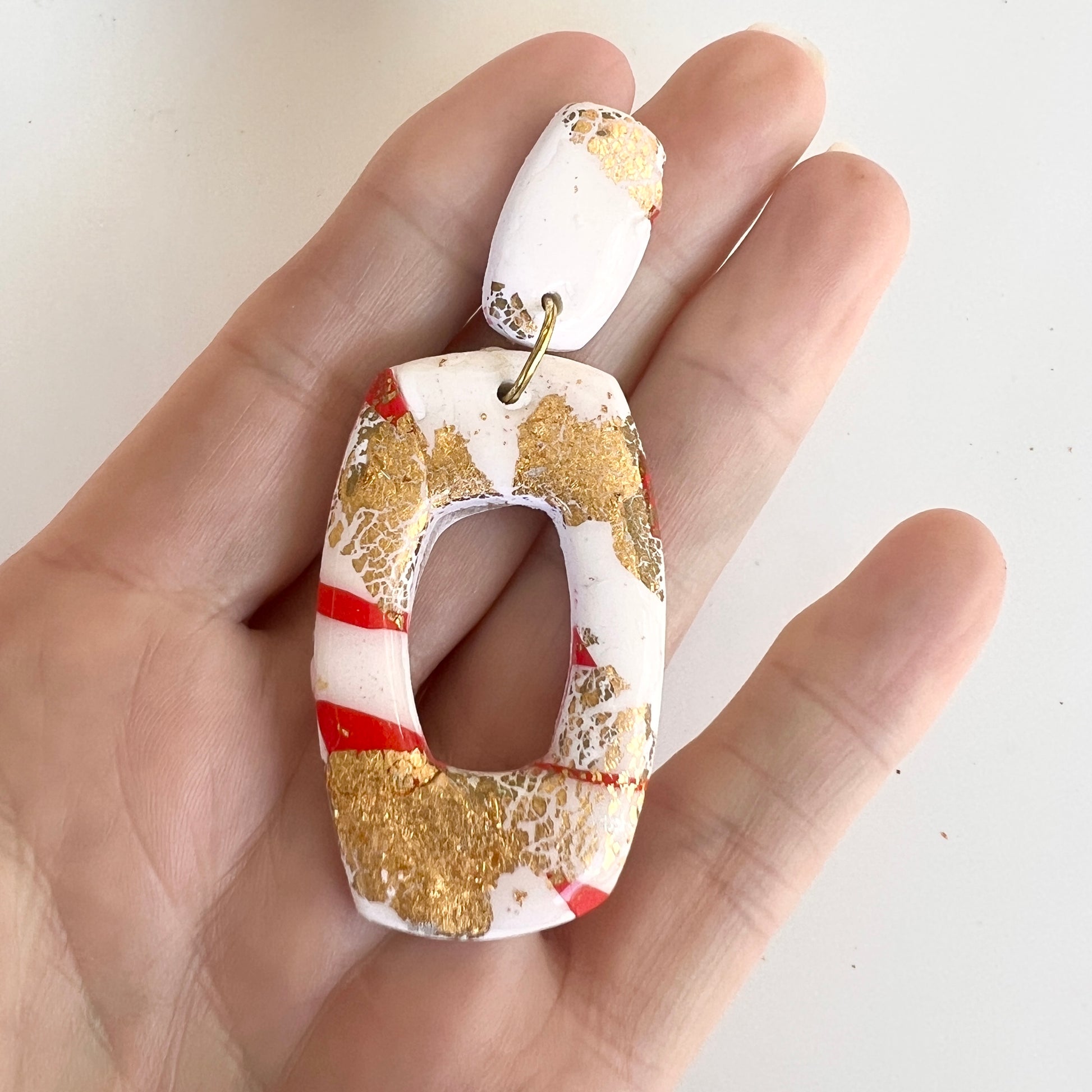 Polymer Clay Christmas Dangles. Red & White with Gold Leaf.