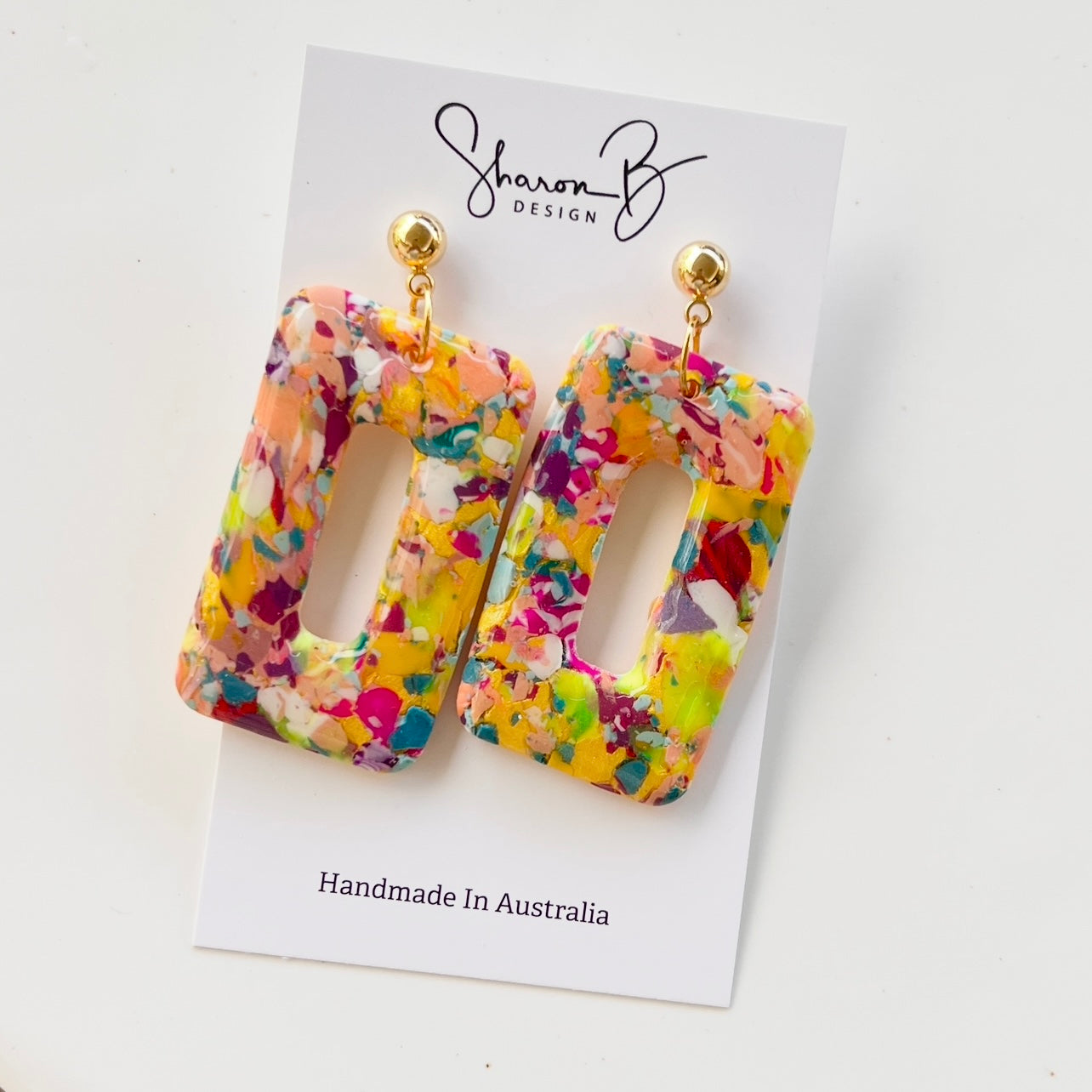 Yellow and multi coloured design finished with a Resin coat to make those colours pop.