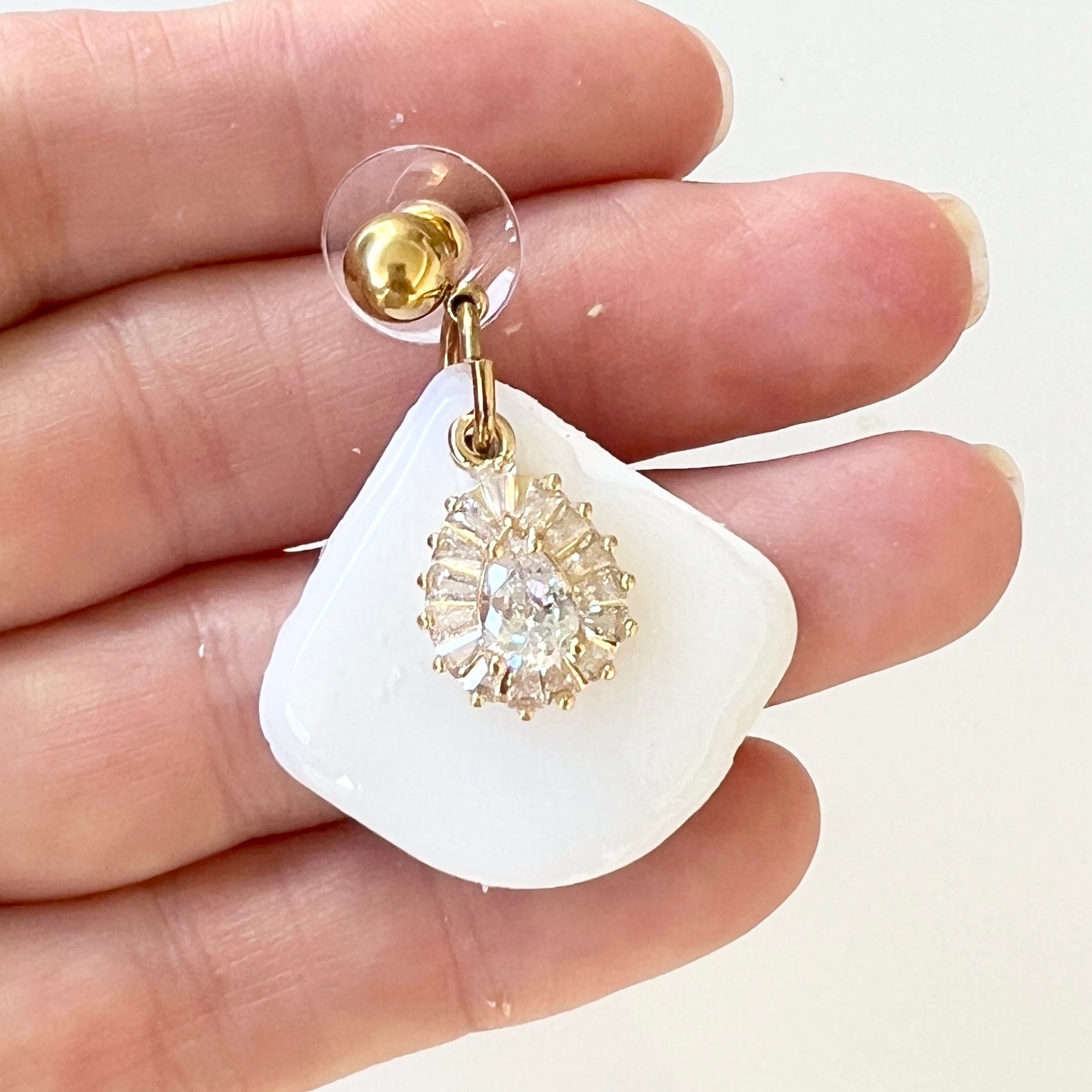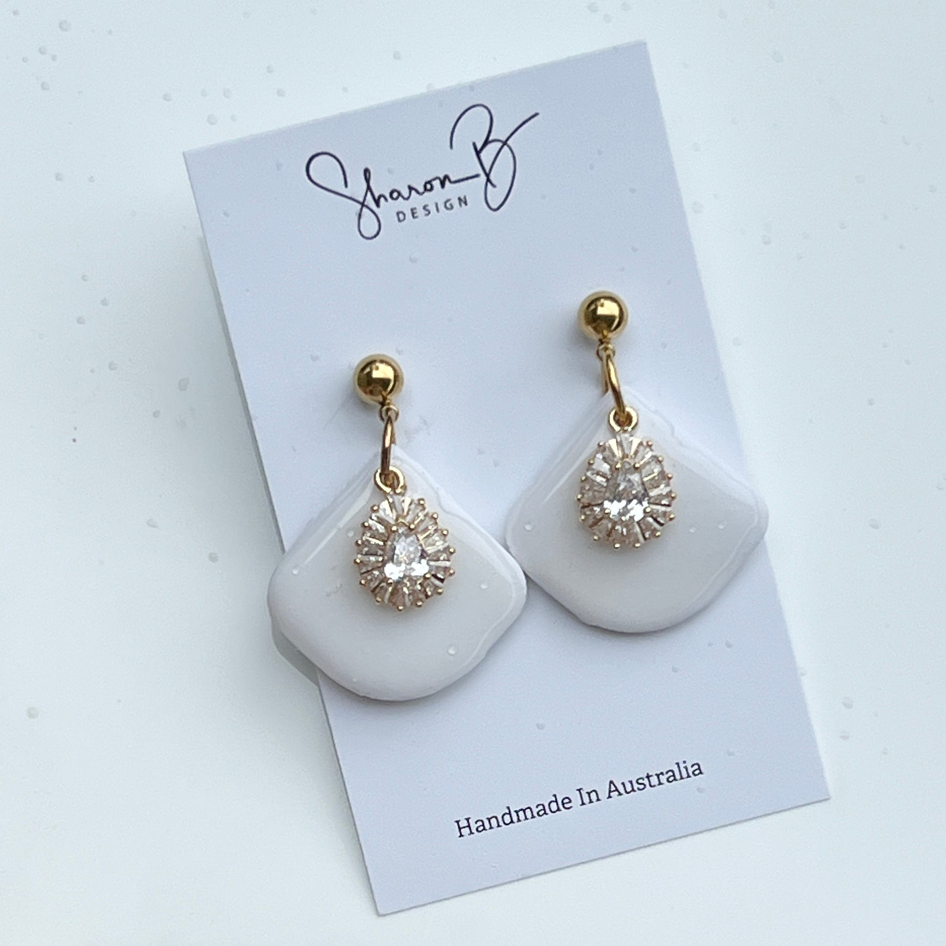 White Dangles with Gold Plated Cubic Zirconia charm.